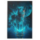 青い黒い炎のハウリングオオカミと月のデザイン。