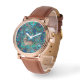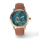ブルーフラワーアクアブルーグリーンフローラの中のユニコーン 腕時計