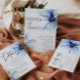 ブルーフラワーミニマリストエレガントな結婚式 招待状