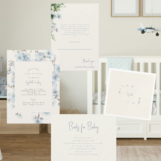 ブルーフローラクリームベビーシャワー 招待状