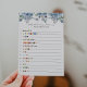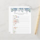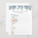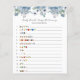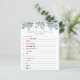 青い花と緑の水色のカスケードを特徴とするベビーシャワーゲームカード。シャワーおもしろいと交流する方法。{解答: 1.ジャングルの本, 2.1匹の魚、2匹の魚、赤魚、青魚3.帽子の中の猫4.5匹の小さなサル5.ニワトリひこブーム6.3匹の小さな豚7.野生の物が8.おもしし与えはCookie 9.ミートボールのチャンスと曇り10.おなかをすかせたキャタピラ11.シャーロットのくもの巣12.レインボーフィッシュ13.グリーンエッグとハム14.ブラウンベア何が見える?}