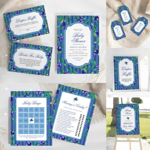 ブルーベリー甘い赤ちゃんシャワーメニューポスター。一致する項目が使用可能。