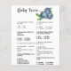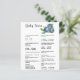 ブルーベリーの水彩イラストレーションを特徴とするかわいい赤ちゃんシャワー招待カード。文字は「ベリーの甘いベビーが途中にある」と言う。 一致する項目が使用可能。回答鍵: 1.d 2.d.午前4時。5.c.6.a7.b.8.c.