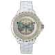 ブルーホワイト黒金ゴールドステンドグラストンフライ 腕時計