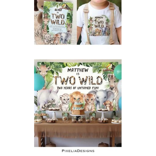 ブルーボーイ2歳の誕生日ワイルドサファリテーマ 招待状