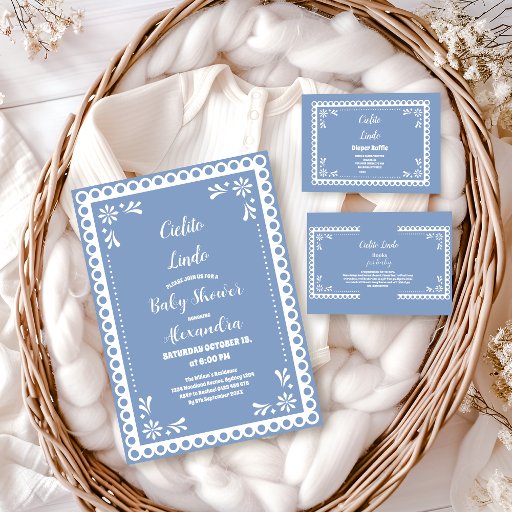 ブルーメキシカンシエリートリンド赤ちゃんシャワー 招待状