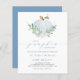 小さなカボチャが途中だ!こ祝ことベビーブランチの招待の便お洒落文具と一緒にエレガントお母さん。青いカボチャ、緑、白い花のイラストレーションの水色のリース。名前、日付、時刻、場所などのイベント詳細を追加してパーソナライズする。この青いカボチャのベビーブランチの招待状はIt's a Boy秋の赤ちゃんシャワーに最適だ。