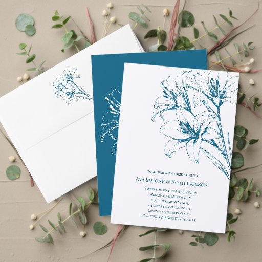 スタイルに感謝の気持ちを表すサンキューカードは、ゆりラインアートをテーマに、白い背景に青い文字を描くと、きれいな心のこもった印象を与える。