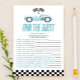 これはブルーレースカーはゲストの赤ちゃんシャワーゲームを見つける。*ゲストを見つける – これはアイスブレーカーゲームである。このゲームには15の質問が含まれている。各ゲストはシャワーのまわりにを行って他のゲストに会い、それぞれの質問に一致する人を見つけ、その名前を入力する。一番多い名前の人が勝つ!