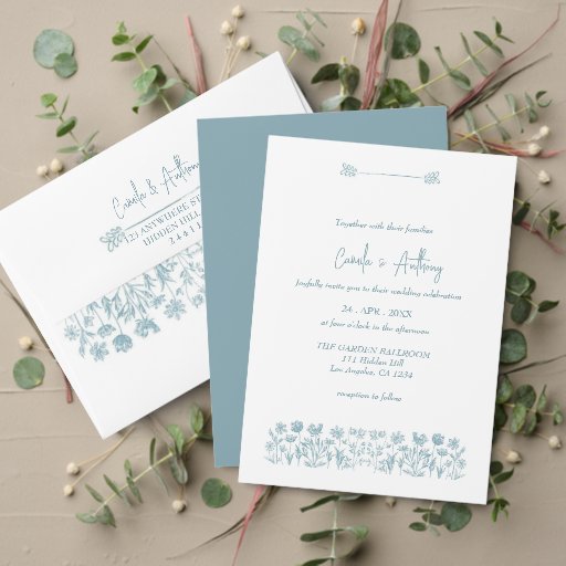 ブルーワイルドフラワーボーホウェディングRSVPカード