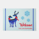 ブルー北欧クリスマストナカイのペアへようこそ ドアマット