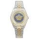 金ゴールドに囲まれた質感王室ののある青めっきを持つ美しい金ゴールドクラウンエンブレム縁どは、金色のグラデーションの背景に積層された円形。