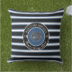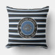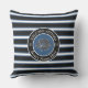 黒モダン青と白のボートネームストライプの航海のライトハウス歓迎装飾用クッションネイビーブルー