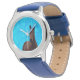 ブルー絞り染め栗の馬キッズレザーウォッチ、 腕時計