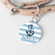 ペットを甘やかせ!デザインは、ライトブルーと白いいかりの背景にクラシックネイビーブルーのロープとのイラストレーションを備えストライプている。前カスタマイズにペットの名前、後ろに連絡詳細。ボウルやペットベッドなど、当店のアクセサリーのコーディネート!