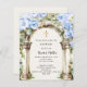 大きな大理石の飾アーチに、青い花模様と黄金の十字架がある。名前と詳細のパーソナライズおよび追加1枚= 1枚の招待状を印刷したエッジからエッジ