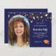 卒業生の垂直方向のサイズの写真を追加。フォトアーチのフレーム。シックなネイビーブルーの背景飾色、金ゴールド星フェイク。名前とパーティー・詳細のパーソナライズおよび追加黄金の文字。