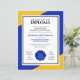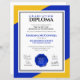 大学、大学、高校、高等教育機関学は、青と金ゴールド、白の背景を設定したレタリングを備えたモダンデザインを使用しコンテンポラリーてエレガント、卒業の卒業証書に洗練を加えることができる王室の。学生とカスタマイズ家族の名前、学部の名前、学校/大学の名前、卒業場所と日付、最大4つまでの署名者、アカデミックなロゴやスローガンを付けた。色とフォントタイプは必要に応じて変更できる。デザイン© W.H. Sim、All Rights Reserved.詳細については、zazzle.com/expressionsoccasionsを参照