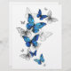 青飛んでいるい蝶は、明るい抽象芸術の背景に蝶と白い蝶が写る。モーフォ。デザインに青い蝶が姿を変える。