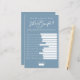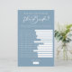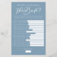 海辺のサマーリゾートをイメージしたおしゃれなダスティーブルーの結婚前お茶会ゲーム 花嫁ってどこまで知ってる? 軽いグレーブルーの紙シートを注文して、友達と楽しい花嫁トリビアゲームを。ミニマルな単色カラースキームが特徴の、楽しいブライズパーティゲームです。