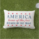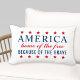 愛国的なタイポグラフィの枕デザインは、引用文を特徴とする"アメリカ:自由の家は、勇者のために"星のアクセントと水平ののパターンの反対側にストライプ。赤、白、ネイビーの青。