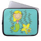 海藻および黄色いヒトデの人魚を愛する女の子のためのかわいい海のテーマのデザインを持つ微笑の金髪の人魚水中に。 人魚のTシャツ、ボディスーツ、よだれかけ、毛布、バープクロス、磁石、カード、バッグ、ステッカー、キーホルダー、mousepads、枕、柱時計、記念品、および大いに多く!