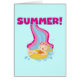 夏、夏を読む水スライドをおよびショッキングピンクおよび青い文字を来る特徴水着の金髪の女の子およびリングや輪のためのかわいいデザイン! 夏のTシャツ、ボディスーツ、よだれかけ、マグ、カード、バッグ、ステッカー、記念品、枕、および大いに多く。