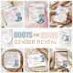 美し祝くデザインされたブーツやボウのテーマジェンダーが招待状を明らかにする私たちの小さな人の性別の予想。欧米やロデオをテーマにしたジェンダーのリビールパーティーに最適な、美しいピンクの弓とクラシック「He or She」テーマを象徴するカウボーイブーツのペア。