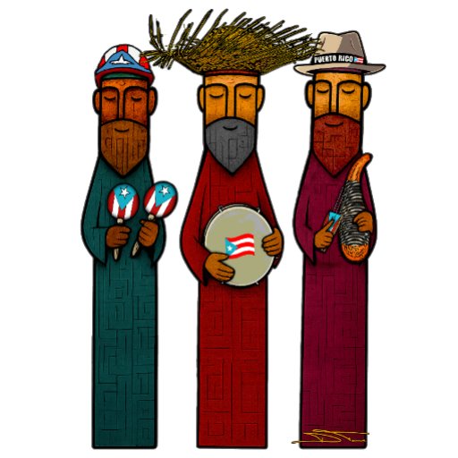 この鮮やかなボリクアのイラストは、プエルトリカンの視点から三人の賢人を再想像し、民俗芸術のテクスチャー、幾何学的なローブ、そして島の祭りの伝統を反映する楽器を融合させています。それぞれの人物は、文化的誇りを象徴するヘッドウェアと穏やかな表情で表現し、パランドラ、コミュニティ、先祖の喜びの精神を呼び起こします。遺産、リズム、統一の祝祭です