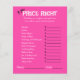 プライス右ベビーシャワーゲーム紙シート