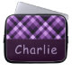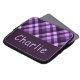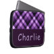 梅モノグラムの紫の美しい斜め格子模様のデザインを特徴とするラップトップスリーブ。提供されたカスタマイズテンプレートフィールドに名前やメッセージを追加するためクリックに、の「パーソナライズされた」ボタンで完璧なギフトを作成すカスタムる。[次へ進むクリック]リンクを選択して、フォント、文字サイズなどを変更する。