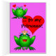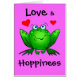 私のプリンセスへの愛そしてHoppiness! 愛の明るく陽気な願いのかわいく、おもしろいでロマンチックで、幸せな緑の漫画のカエル、ピンク/紫色カードおよび年のバレンタインデーまたは日のあなたの王女のためのhoppiness。 ほしければこのカードの背景色を変えることができます(カスタマイズ編集背景)。