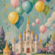 お姫様の誕生祝いに最適な城と風船を持つパステル誕生日紙プレート