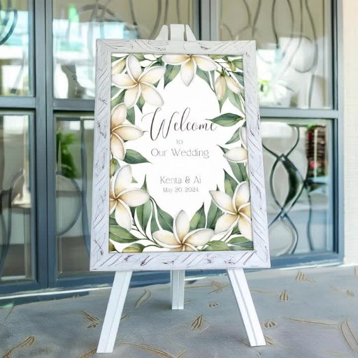 プリュメリアをテーマにした結婚式の「save the date」招待状のテンプレートです。