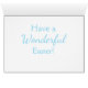 この絵柄イースターカードは、背景にパステルの格子縞があり、白いイースターバニーと文字「ハッピーイースター」が付いています。 中にはターコイズのチューリップ(カードの前面の格子に合う)と「すばらしい復活祭を!」という文字が入っています。 下に 必カスタマイズ要に応じてカードを作成します。