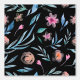 プレミアムモダン | 黒色壁紙に水色の花