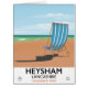 Heysham Lancashireヴィンテージ列車のポスター、砂のビーチのデッキチェアのレトロなスタイル海辺の旅行ポスター。