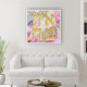 このメタルアート高品質プリントの鮮やかなカラー印刷に感動。ヘブライ語の文字は、ラベンダー、金ゴールド、ピンクの色合いでキルトの背景にAhavah、Love、そしてフロートという単語を綴る。
