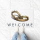可愛いクマのトラップ歓迎マットの金属金ゴールド。