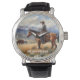 このデザインは、背景に山を持つベイホースに乗ってカウボーイを持っている。