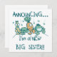 Veggiesおもしろい New Big Sister T-Shirts、ボディスーツ、キーチェーン、ボタン、バッグ、マグカップ、シール、カード、その他のビッグシスターのアイテムは、目と文字を持つ間抜けいくつかのビーギーを特徴と読して「Anouncing...私はNEW BIG SISTER!!」。