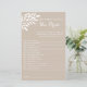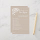 おもしろいと笑いをブライダルシャワーに追加しエレガントて、この"どのように良く花嫁を知っている"ゲーム。繊細な白い葉のアクセントを持つミニマルなベージュの背景を特色とし、このゲームカード招待状は花嫁についての知識をテストする。色から最初の日付まお気に入りので様々な質問を持ち寄せるのは、誰もが一緒に行くのに最適な氷解の波だ。このゲモダンームは思い出に残るヒットを確実に行う、素朴な、または自然インスパイアブライダルシャワーに理想的!