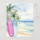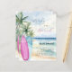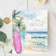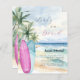 ジェンダーエレガント・リビールへの招待パーティー。水色の砂浜のビーチ、海の波とヤシの木の背景と、ビーチの上に青とピンクのサーフボード。性別の明らかにまたは双子を期待する。1枚= 1枚の招待状を印刷したエッジからエッジ