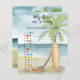 ベビーを乗せ!赤ちゃんシャワーの招待 – 夏の赤ちゃんシャワーに最適。ビーチテーマ。水の色のデザインは、サーフボード、パームの木と夏の帽子と海とビーチのシーンを持っている。
