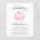 ソフトな灰色のタイポグラフィとスクリプトの混書合フレンドリー「甘い小さなかぼちゃが彼女の道にある」とパンプキンのパステルピンクの水色を含むメールの招待によるキュートで陽気で予算の高い女の子のシャワースタイリッシュ。母の名前とシャワー詳細をシンプルタイポグラフィグレー。