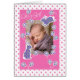 この写真カードを持つベビーガールの到着を知らせる;デザインはカスタマイズ2つの可愛いウサギ、花とピンクの水玉模様かわいらしを持って縁どい。自分の写真を前面に、自分のメッセージを内側に追加する。