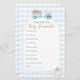 小さなカボチャ青いトラックのギンガムベビーシャワー祈りの言葉ベビーゲーム