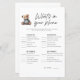 男の子の赤ちゃんシャワーのための可愛い赤ちゃんシャワーゲーム。お客様にギフトの回答を記入してもらう。他のオプションについては、ベビーシャワーゲームのコレクションを参照する。