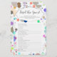 この赤ちゃんシャワーゲームカードモダンは、色のドットの背景にスクリプトのフォントを備え数々の、男の赤ちゃん、赤ちゃん女の子や驚きに最適!このカードを使って性別を明かすパーティー!