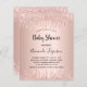 赤ん坊のシャワー祝は、赤ん坊の女の子。バラ金ゴールドフェイクの金属的な背景。バラ飾金ゴールド、ピンクフェイクのグリッター、滴り絵を描落ちた外観と。母の名前とパーティー詳細のためのテンプレート。名前と文字:赤ちゃんシャワーは手書で書かれたスタイルの台本と共にある